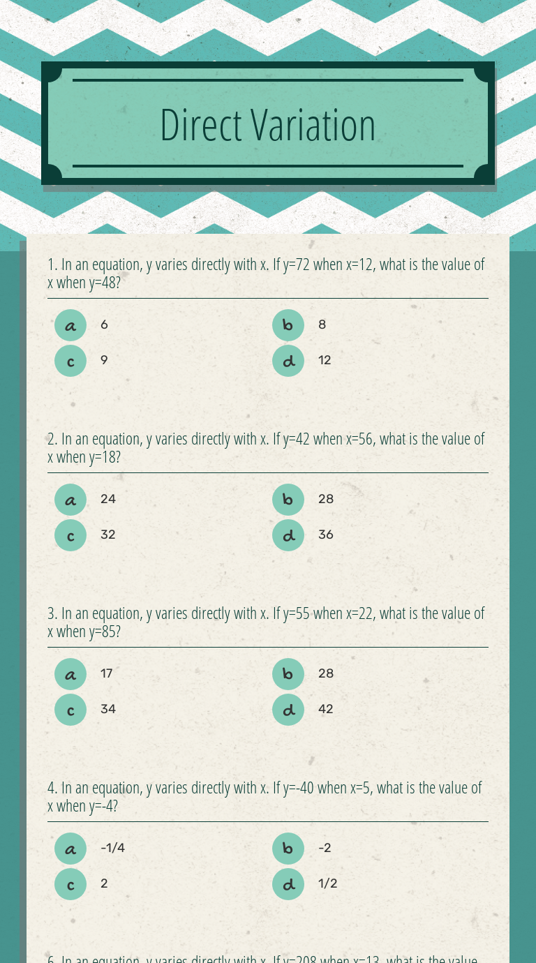 Suppose y varies directly as x, and y= 16 when x = 8. 4) y varies directly with x. Then test your knowledge with worksheets and online exercises. This video lesson teaches the concept of direct variation. More lessons for grade 9 · math worksheets videos, worksheets, solutions, and activities to help algebra students learn about direct .